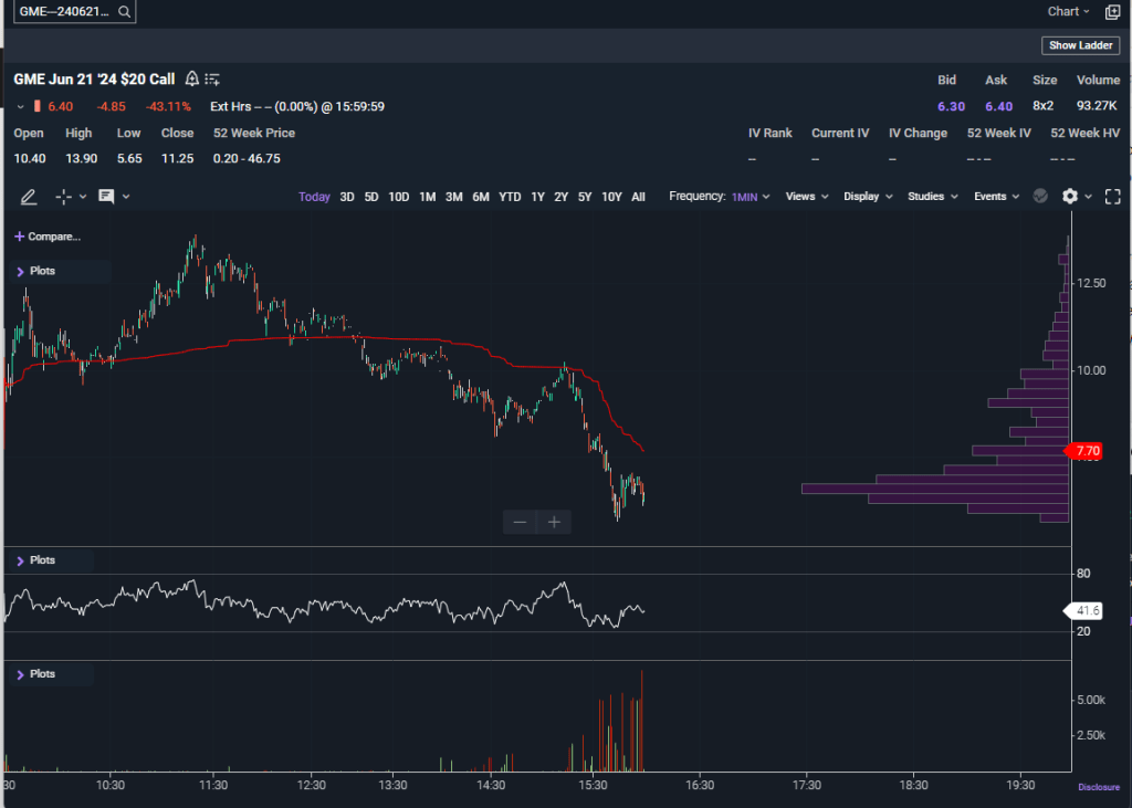 We can apply it in practice to a single GameStop $20 call expiring June 21 2024: